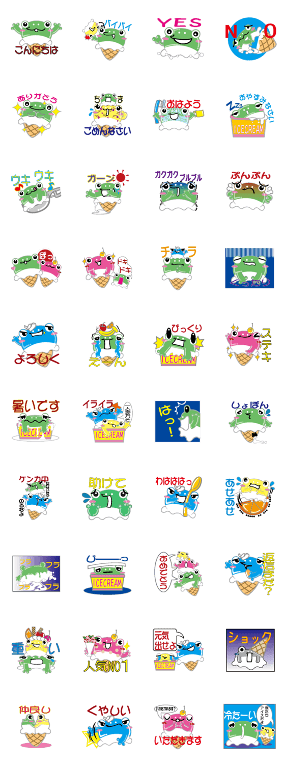 カエルアイスクリームのスタンプ一覧と説明