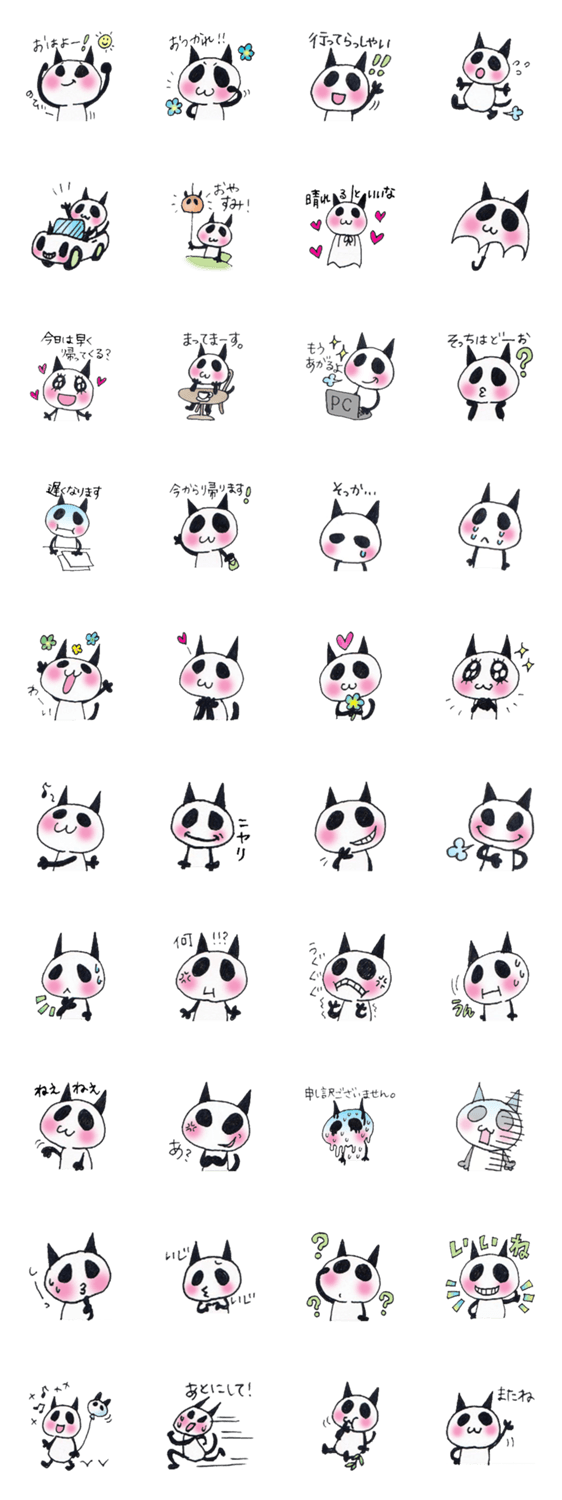 こゆにゃんだの日常会話スタンプ。パンダのようなねこのこゆにゃんだ。挨拶や感情表現に。
