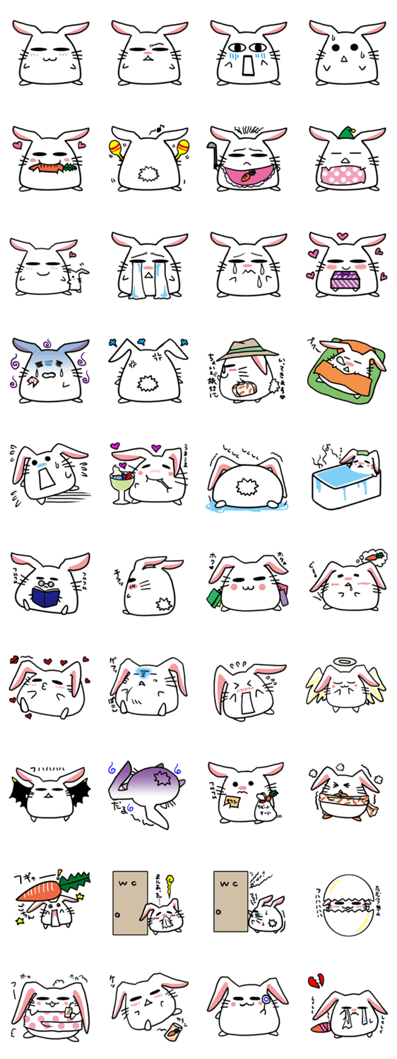 マイキャラでスタンプをつくってみました。もちもちしたうさぎです。