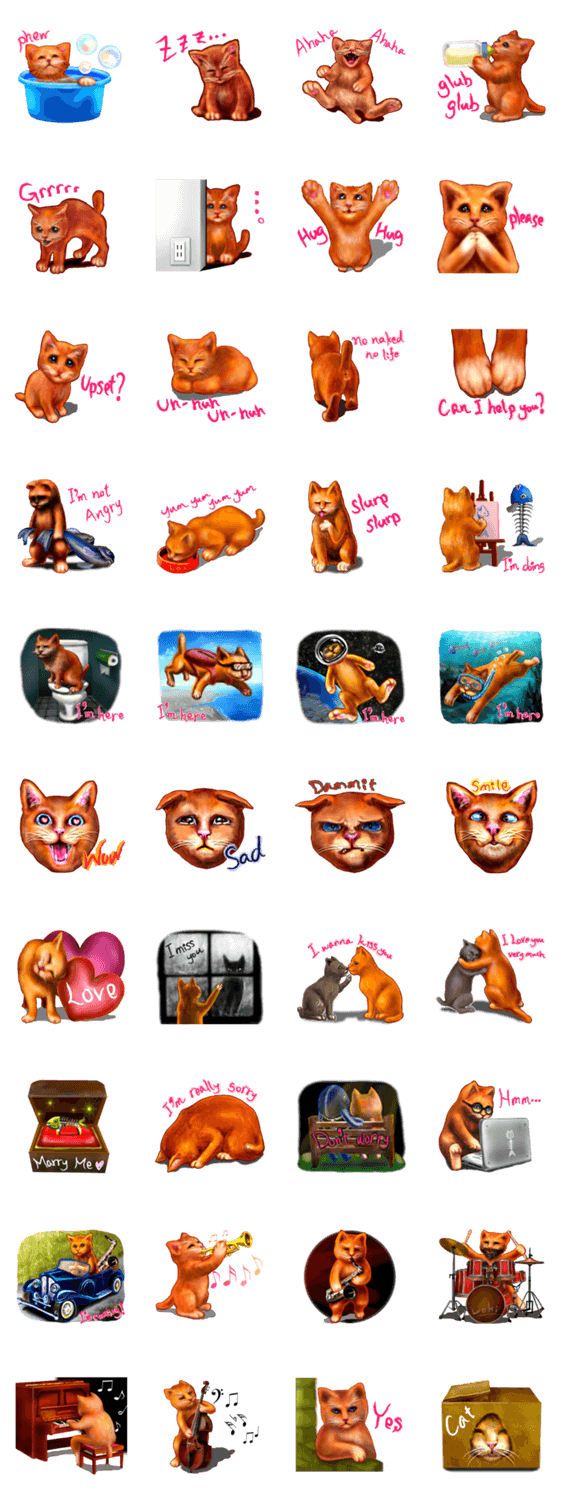 オレンジ猫「ロキ」の成長期のスタンプ一覧と説明