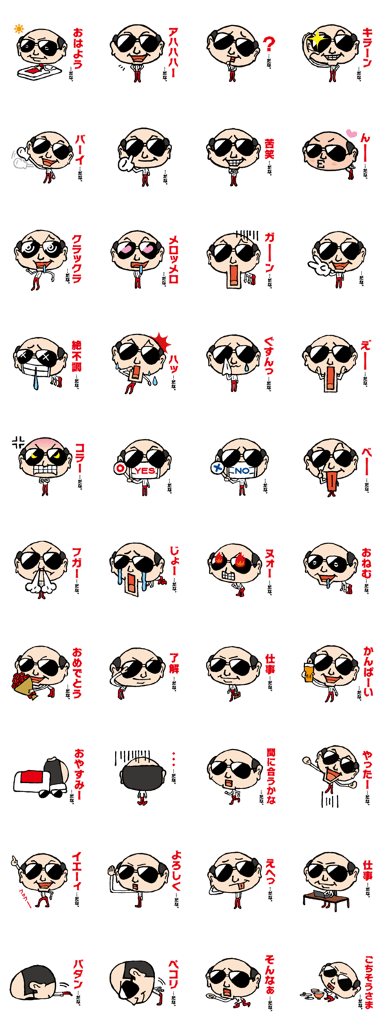 サングラスをかけた変な親父「グラさん」のスタンプ一覧と説明