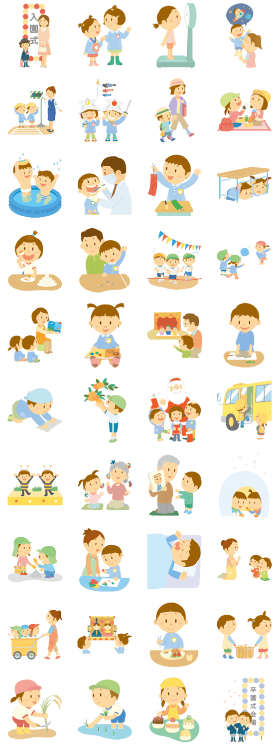 かわいい盛りの園児たち。ほほえましいイベントと日常風景のスタンプです!