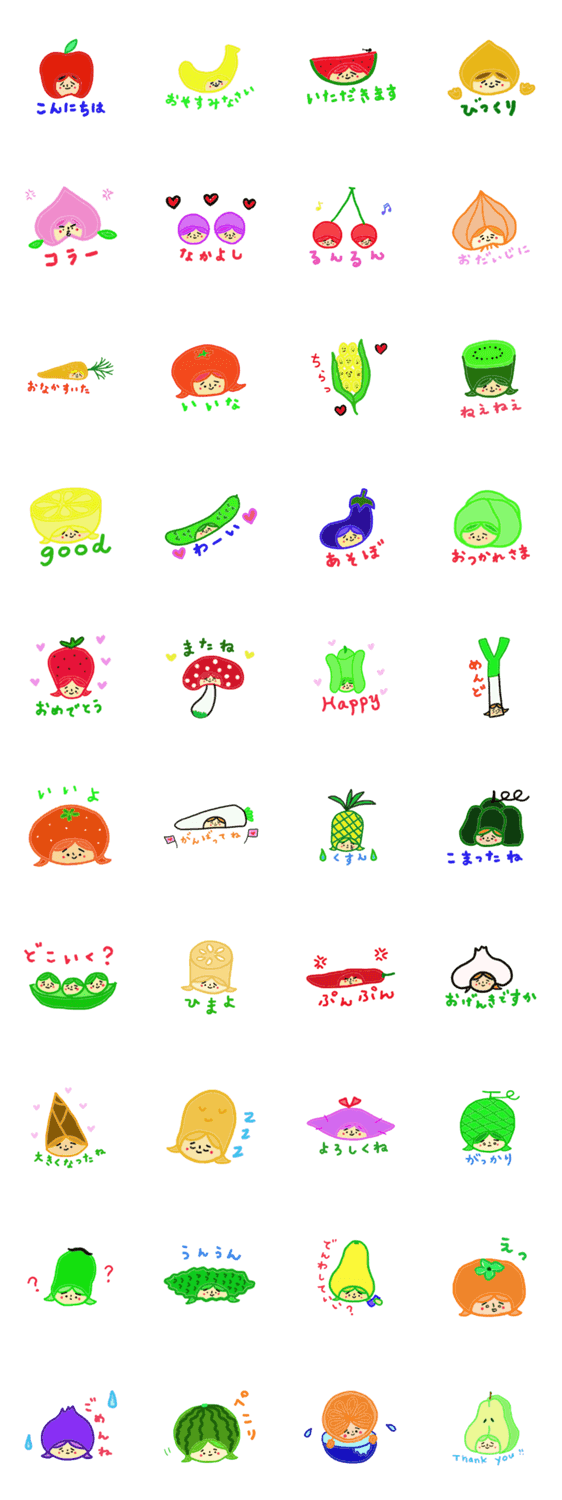 たれまゆすずちゃん 野菜&果物バージョンのスタンプ一覧と説明
