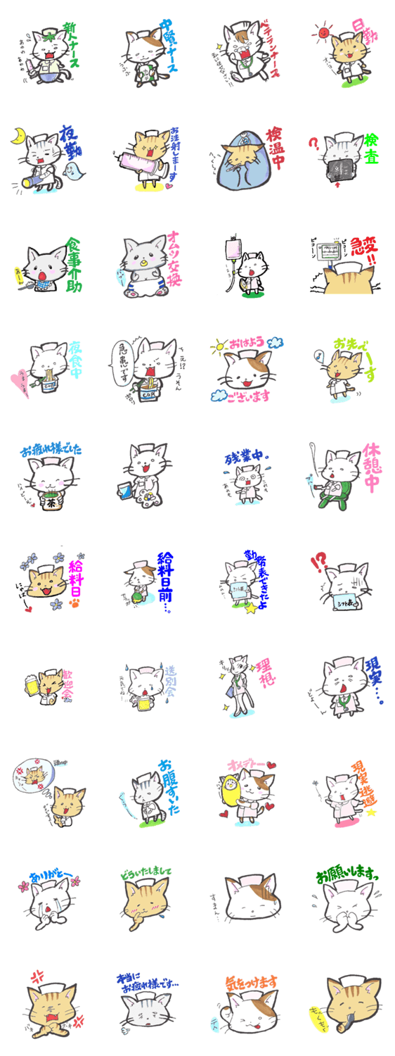 可愛い猫たちが病院で日々奮闘するスタンプです。