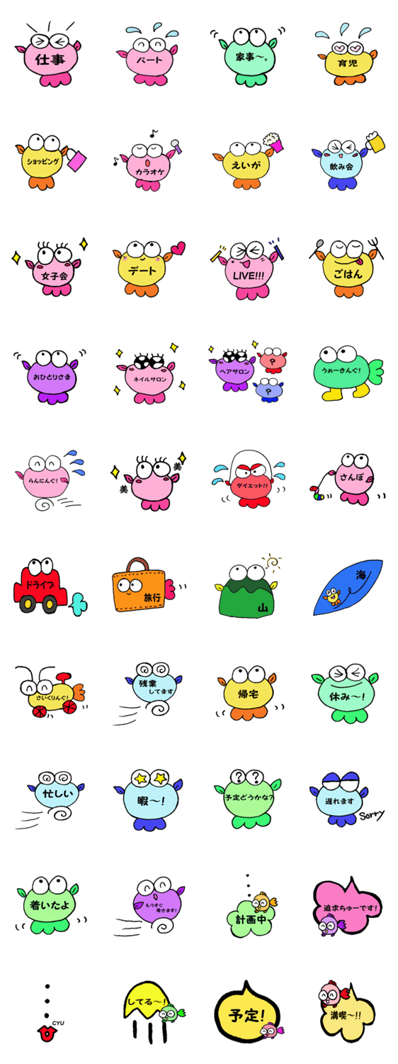 きんちゃんファミリーのスタンプ+言葉スタンプで、現在と予定を、簡単にあらわす事ができます。