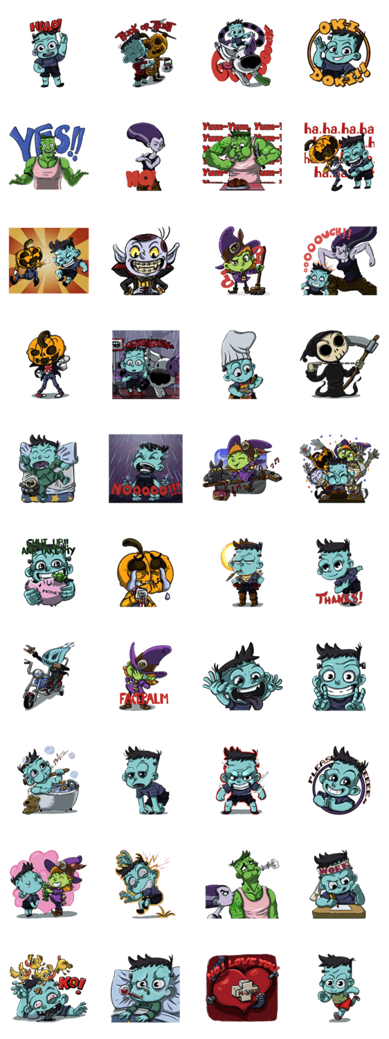 Halloween Kids: Frankie & Friendsのスタンプ一覧と説明
