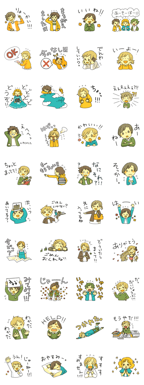 日常で使える男の子と女の子のかわいいスタンプ。やたら焦ったり、あわてたり、アセアセしている人におすすめ。文字入りで使いやすく、間違いの訂正にも便利です。