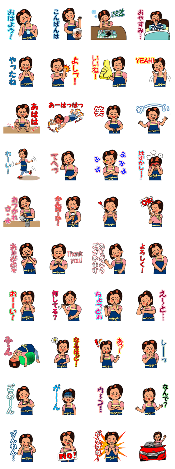 笑顔のMimiさん再び。「おはよう」「ありがとう」「お疲れ様」から「おやすみ」まで,様々なシーンでMimiさんの笑顔やかわいい仕草が,LINEの会話に潤いを加えます。
