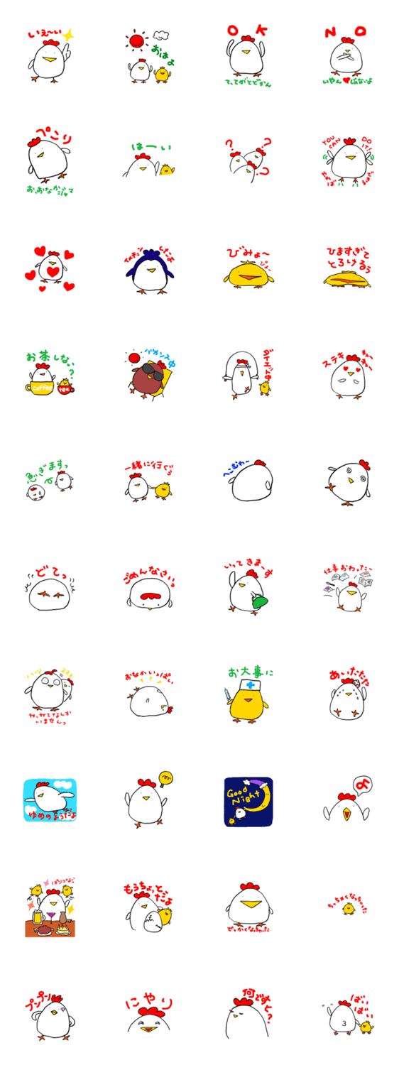 にわっとりーとぴよ~るの日常のスタンプ一覧と説明