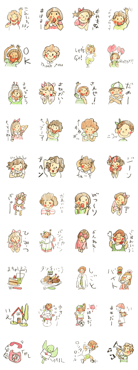 1児の母で絵本作家のはまのゆかが描いたスタンプです。子どもが持つ自由奔放な線を目指し制作しました。