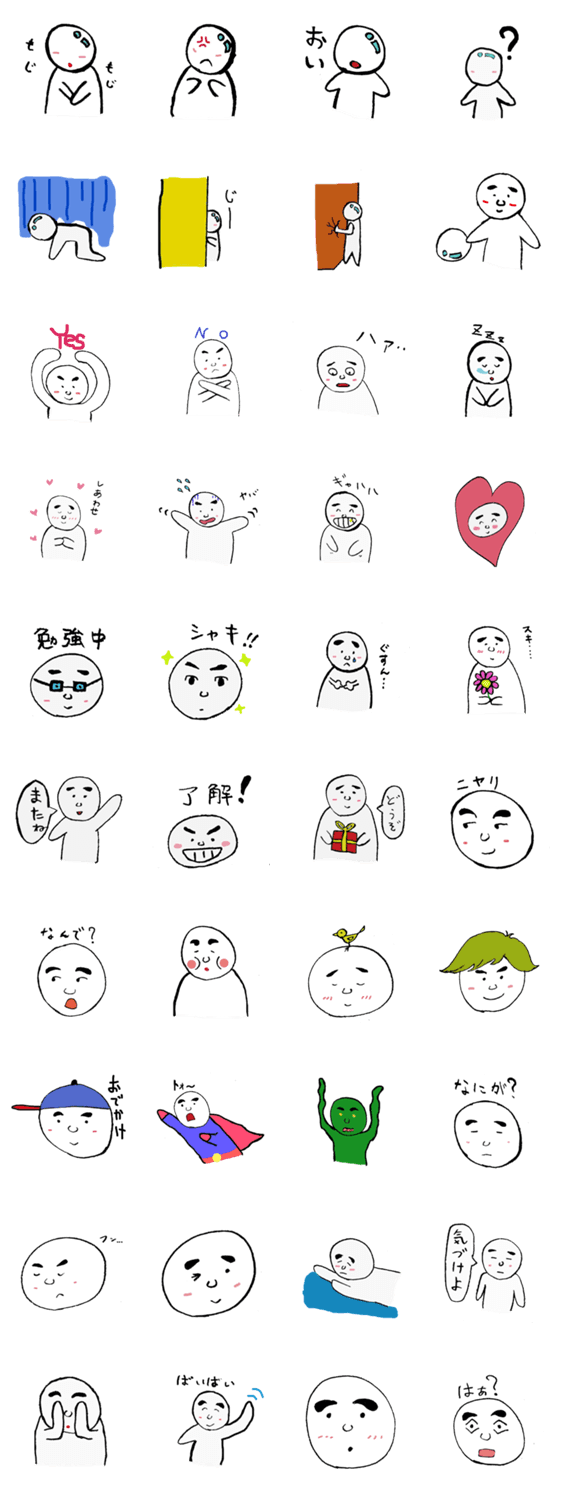 いつもはのっぺらぼうの仮面を被った坊ちゃん!その素顔が明らかに!個性豊かなスタンプです!