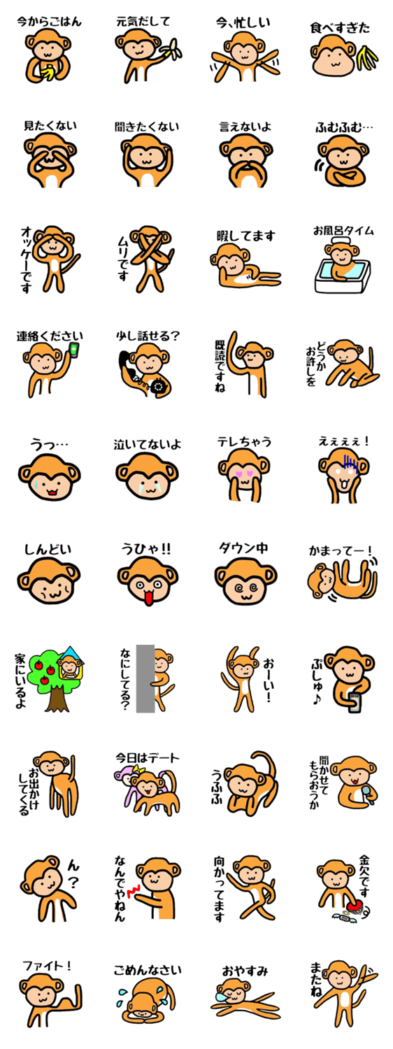 おサルのさるおのスタンプ一覧と説明