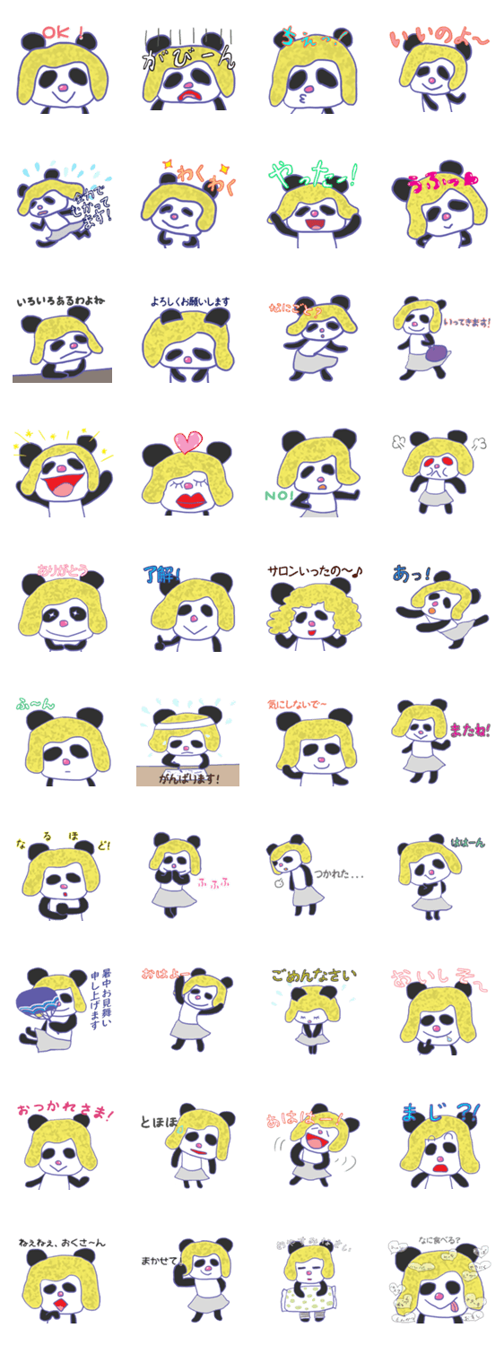 ピンクの鼻と黄色い髪がご自慢のマダムパンダ。トークをカラフルに彩ります!