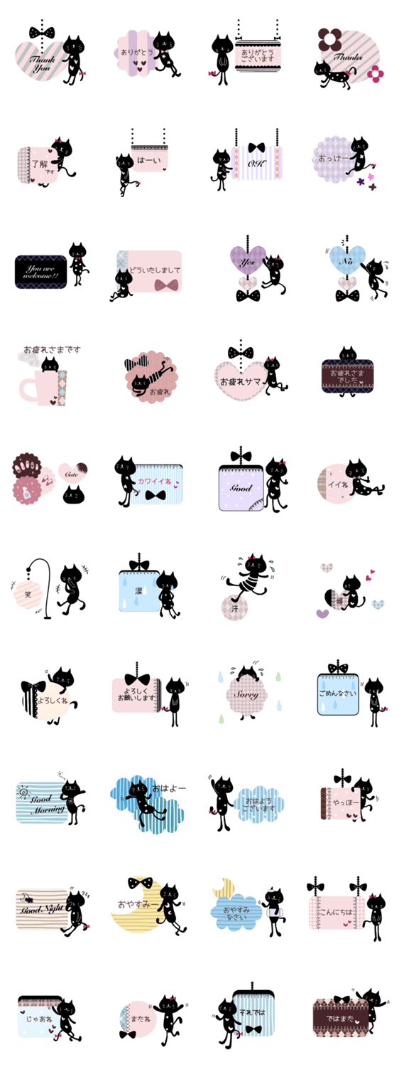 大人可愛い黒猫スタンプのスタンプ一覧と説明