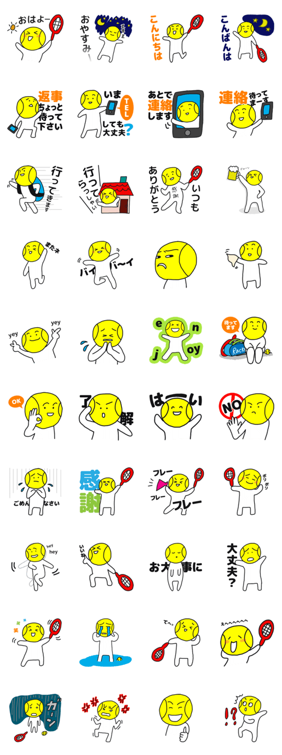 テニス好きによる、テニス好きのためのスタンプです!パート2は日常編です。