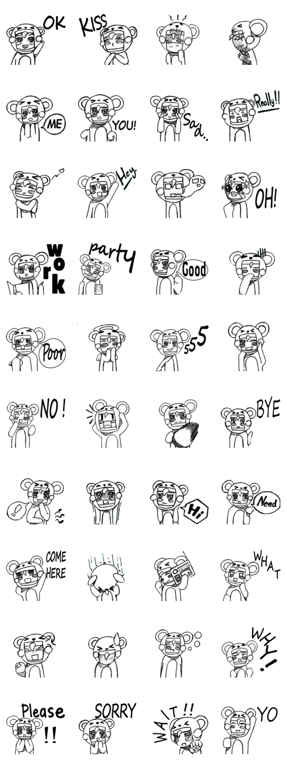 Cartoon Boy anime drawing v.baby bearのスタンプ一覧と説明