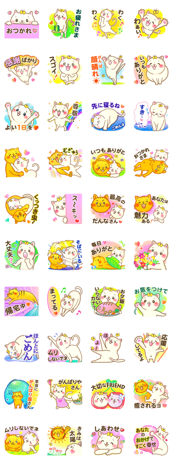 ねこにゃん夫婦のしあわせことばのスタンプ一覧と説明