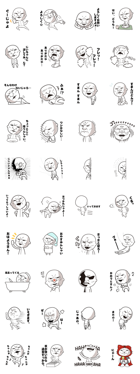 こわもてじいちゃんスタンプのスタンプ一覧と説明