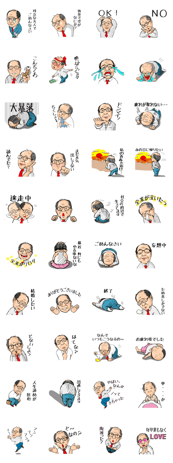 うだつのあがらないおっさんのスタンプ一覧と説明