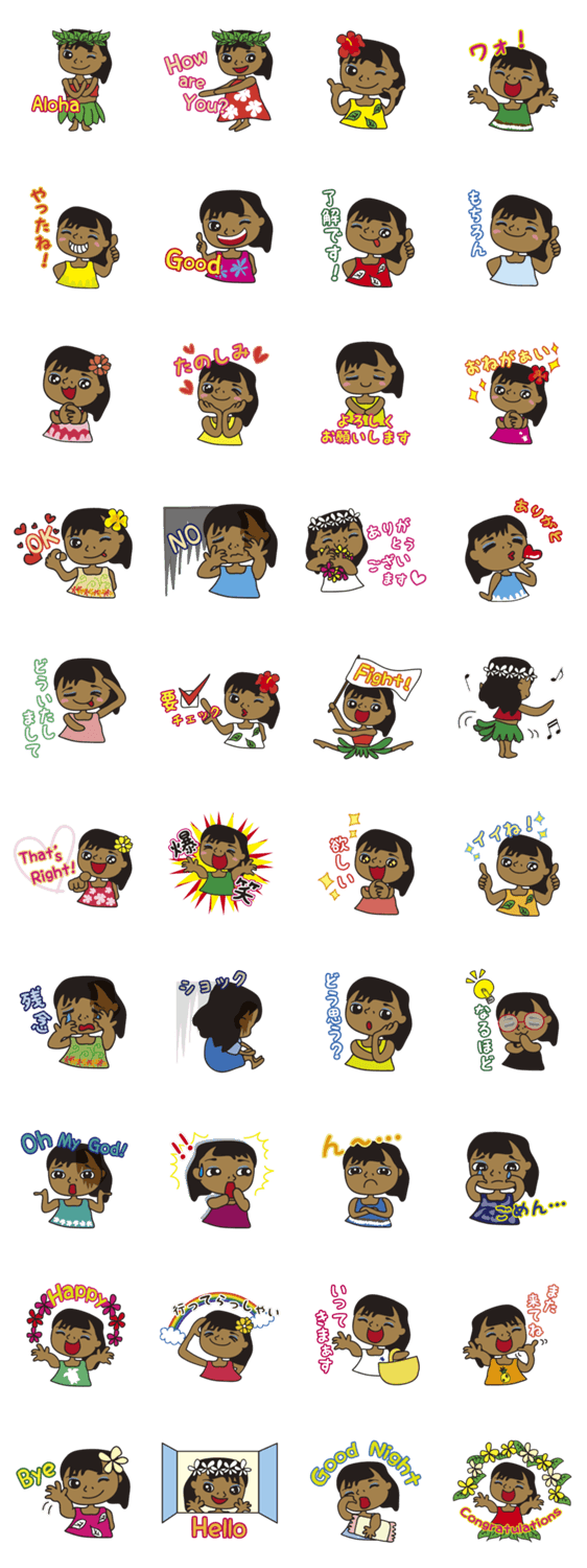 ハワイアンガールのスタンプ一覧と説明