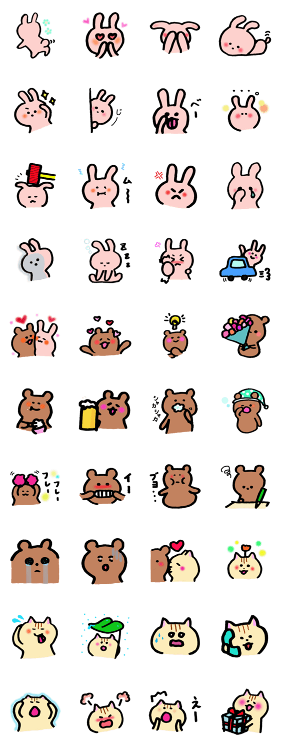 うさぎさん、くまさん、ねこさんたちが様々な表情を見せてくれる可愛いスタンプができました。毎日のトークをきっともっと楽しくしてくれます♪