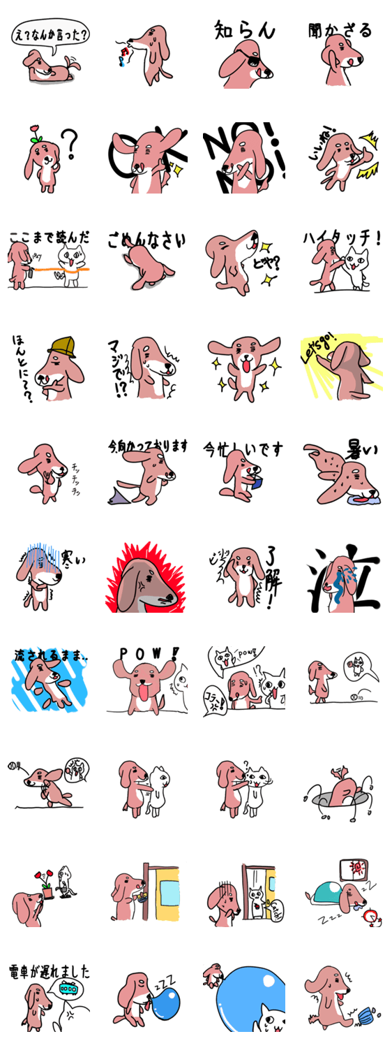 いたずら大好き!いつもすっとぼけている犬のスタンプです。みんなのすっとぼけたい気持ちを応援します。